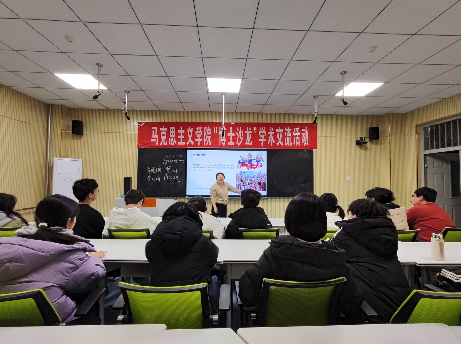 11月25日晚,太阳成集团tyc234cc在聚核楼401教室开展第三期“博士沙龙”学术交流活动。本次活动由青年博士教师李晓雨担任主讲人,吸引了思想政治教育教研室的部分教师、2023级学科教学(思政)专业研究生以及众多思想政治教育专业的本科生热情参与。