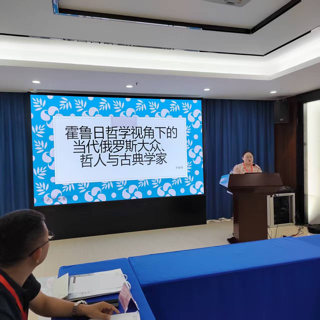 作为一场聚焦国际哲学前沿的学术盛会,本次活动汇聚了国内外哲学领域的知名学者。耿海天博士承担了重要学术翻译任务,为俄罗斯人民友谊大学人文与社会科学系尼日尼科夫教授的报告《哲学世界观类型与霍鲁日的创作》、俄罗斯远东联邦大学彼顺教授的讲座《俄罗斯哲学发展的特殊性》及报告《霍鲁日与俄罗斯哲学的人学前景》提供精准学术翻译,保障中俄学者沟通顺畅,并以《霍鲁日协同人学与俄罗斯冰球》为题作报告,从独特体育文化视角解读霍鲁日理论的实践价值。李天昀博士围绕《俄国哲学史方法论的歧路》展开论述,深入剖析俄国哲学史研究的关键问题,李晓雨博士则以《霍鲁日哲学视角下的当代俄罗斯大众、哲人与古典学家》为主题分享研究,为理解当代俄罗斯社会与哲学的关联提供新思路。