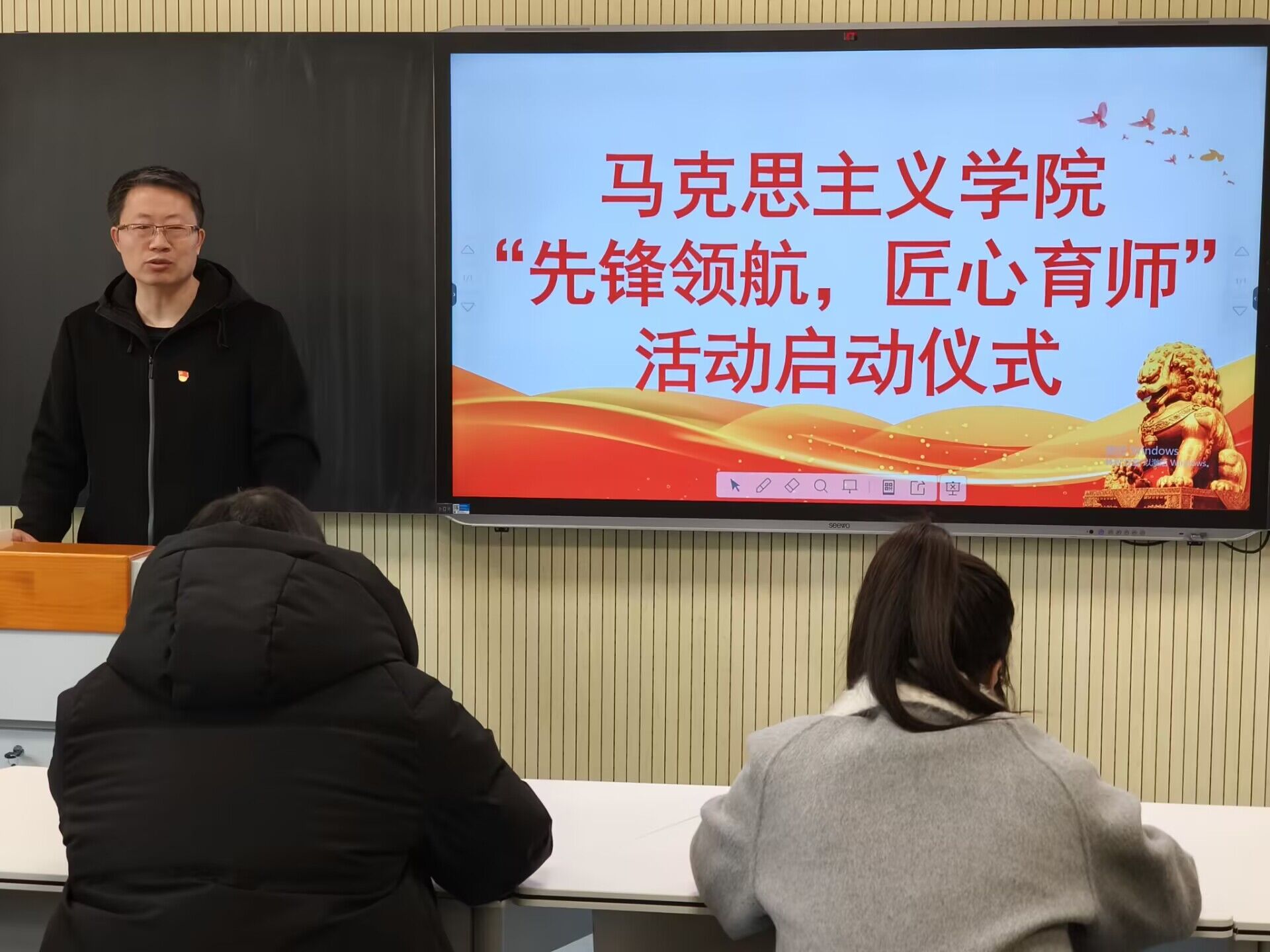 本活动旨在全面贯彻党的教育方针,落实立德树人根本任务,充分发挥基层党组织战斗堡垒作用和党员教师先锋模范作用,将党建工作与师范生培养深度融合,培养“政治强、情怀深、业务精、作风正”的新时代基础教育人才。公司充分发挥党员教师占比高、师生比高的优势,通过师生结对子的方式,对思想政治教育专业大二年级全体本科生,围绕如何备好思政课、讲好思政课进行精准指导,并于第2教学周到11教学周分批分期进行模拟讲课实训。